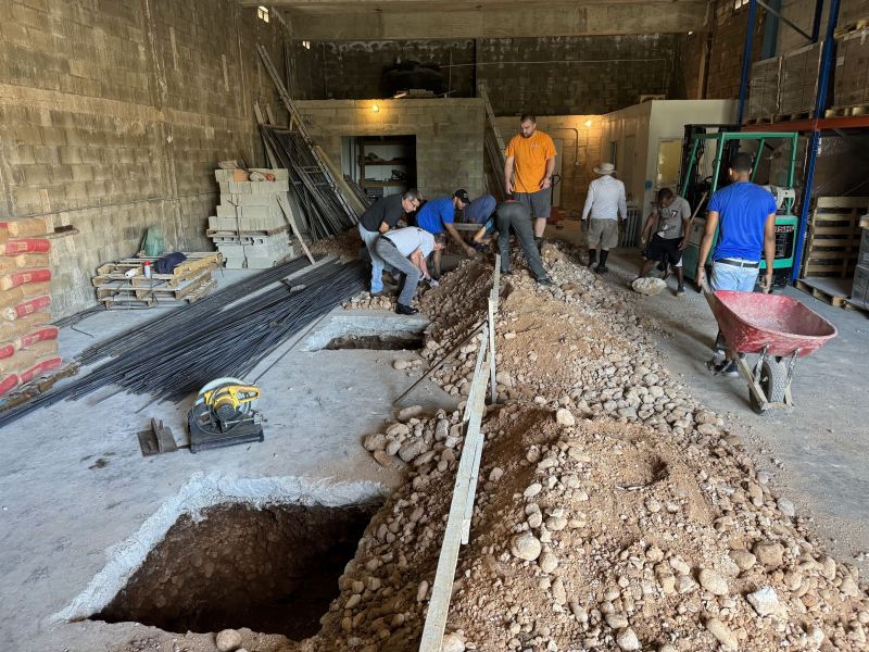 The team’s primary service project was to begin work on the next phase of improvements to our Ministry Hub. The plan for this phase of the project is to construct a large multi-purpose room on one side of the existing structure. This room will serve as a meeting room for conferences and, eventually, a dining area for mission teams. Working with an engineer and a local construction crew, the team aided in the construction of a concrete block wall that runs from the front of the building to what is currently the tool room.